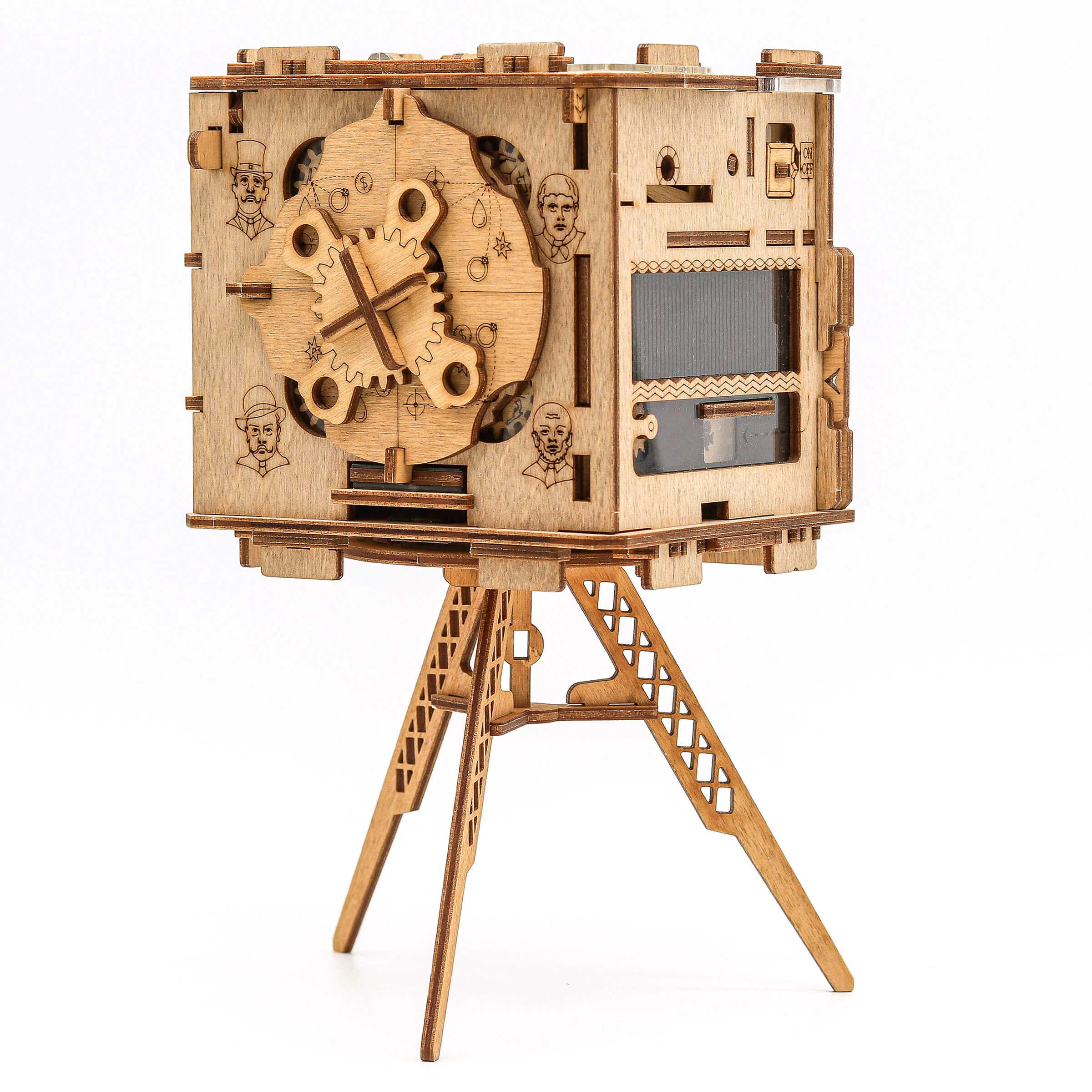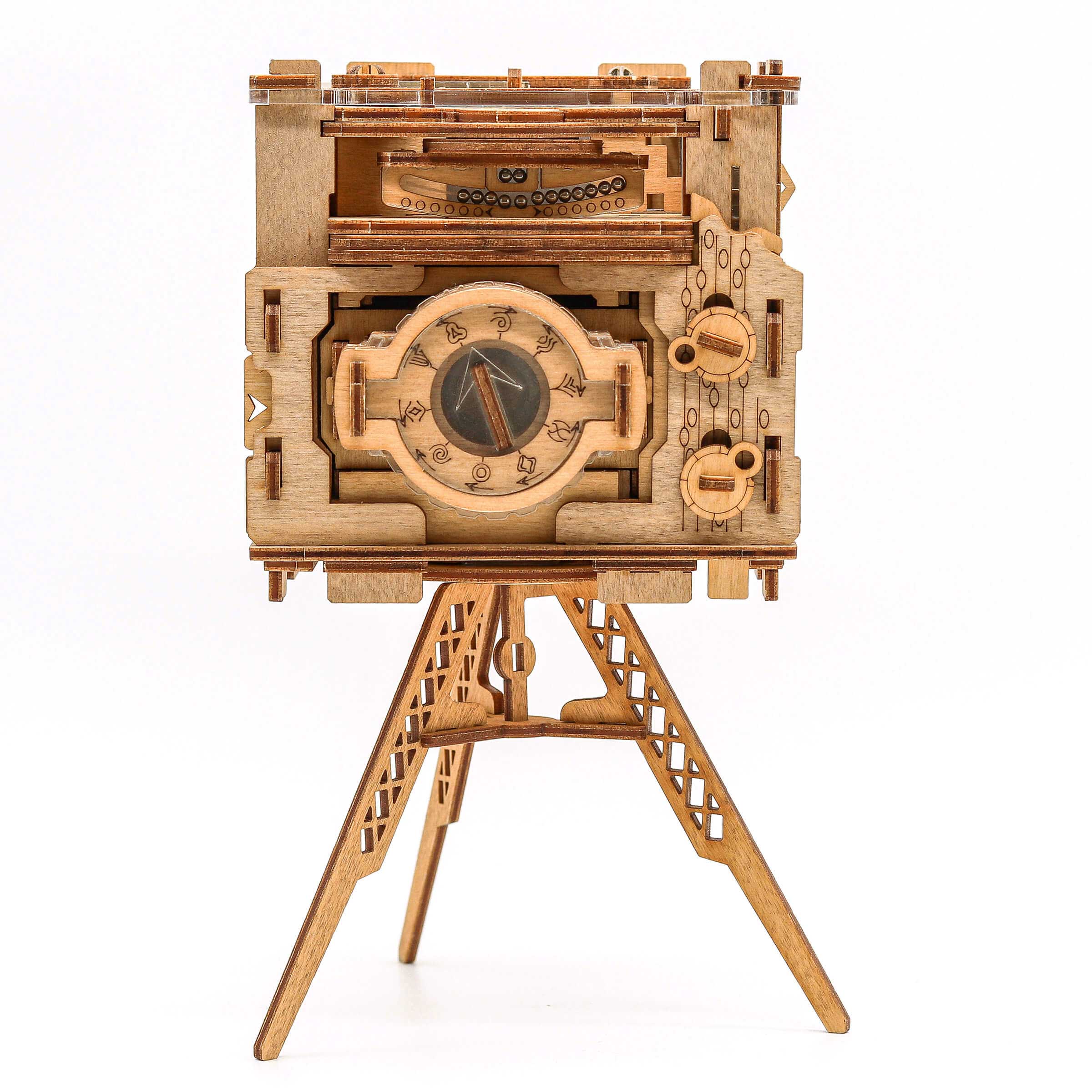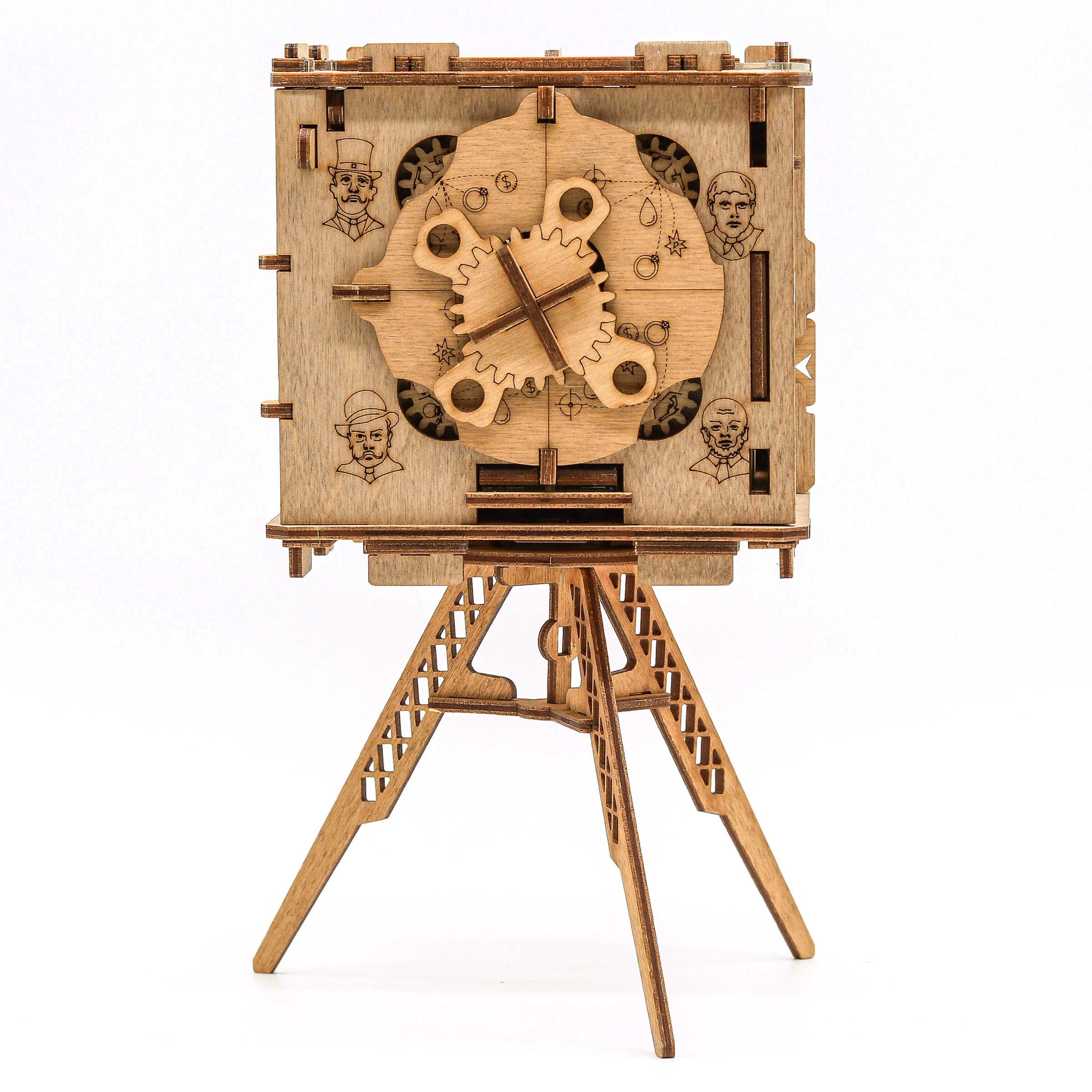 Kameraet leveres desuden med et elegant træstativ, så det kan stå fremme som et flot og dekorativt trofæ på hylden, når mysteriet er løst. Det gør Sherlock's Camera til den absolut perfekte gaveidé til fødselsdage, jul, fars dag eller som en overraskelse til enhver ægte puslespilsentusiast.