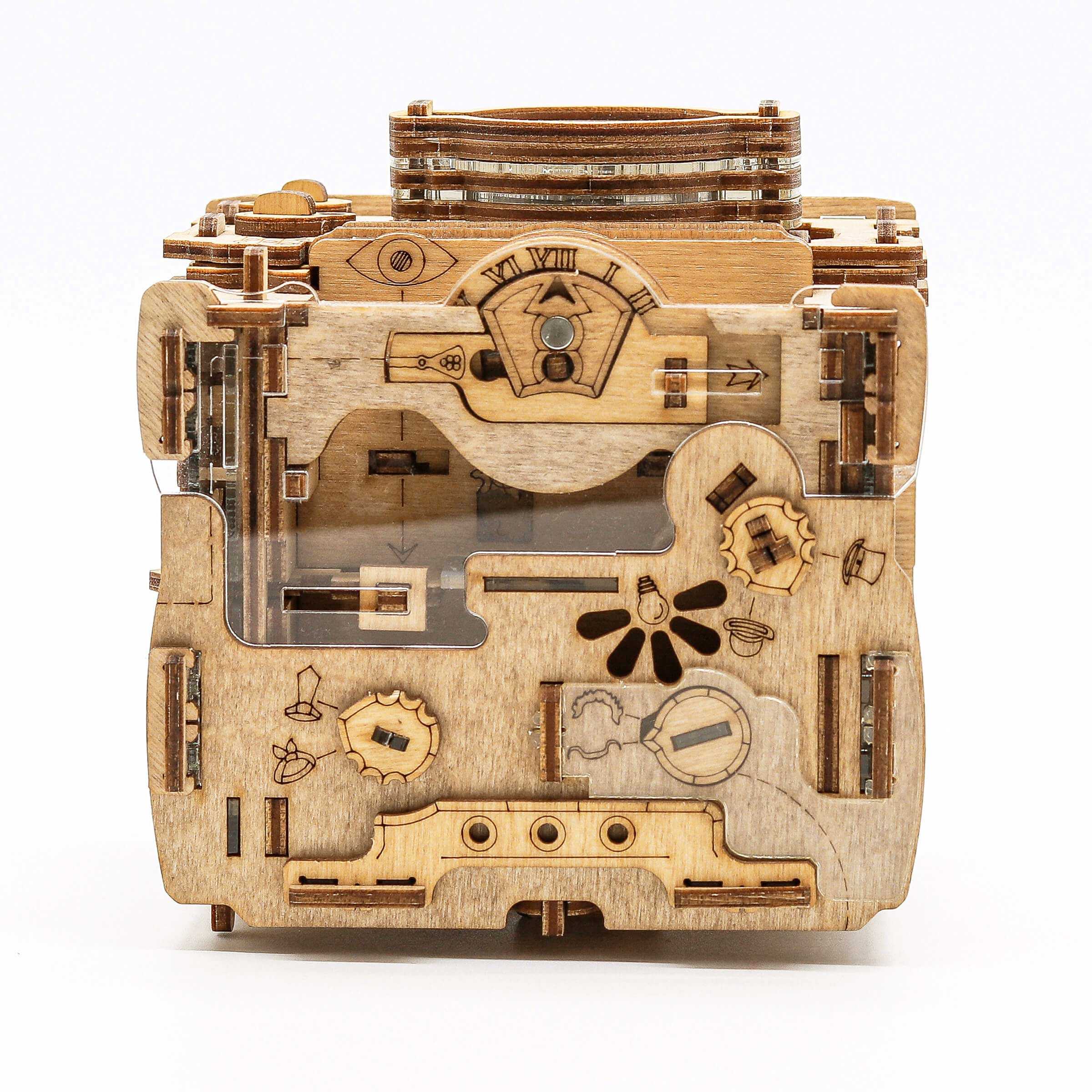 Er du klar til den ultimative detektivudfordring? Med Cluebox – Sherlock's Camera fra iDventure får du et håndlavet escape room-spil i et unikt og elegant trædesign. Dette er ikke bare en almindelig puslespilsæske – det er en avanceret hjernevrider fyldt med snedige låse, skjulte mekanismer, magneter og kryptiske symboler, der venter på at blive afkodet.